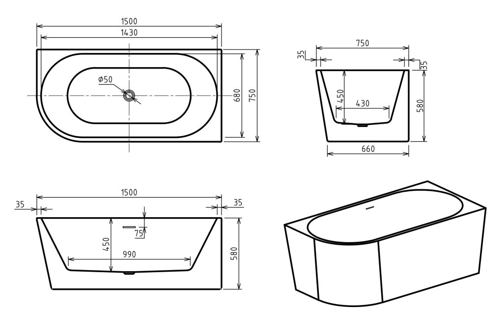 A NIWELL AVIORA-R szabadonálló kád a modern fürdőszobák elegáns és praktikus megoldása. Ez a jobboldali sarokba szerelhető, fal mellé helyezhető szabadonálló kád ideális választás azok számára, akik a letisztult megjelenést szeretnék ötvözni a helytakarékos kialakítással. Harmonikus formavilága és fényes fehér felülete időtálló stílust kölcsönöz a fürdőszobának, miközben kiválóan illeszkedik modern és minimalista enteriőrökbe is.