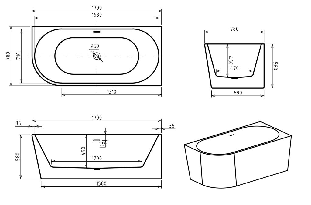 A NIWELL szabadonálló fürdőkádjainál a minimalista túlfolyó nyílás egy különleges, egyedi tervezésű megoldás, amely hozzáad a kád eleganciájához.